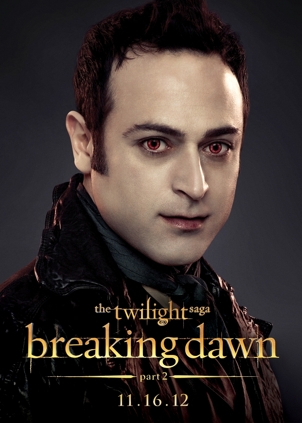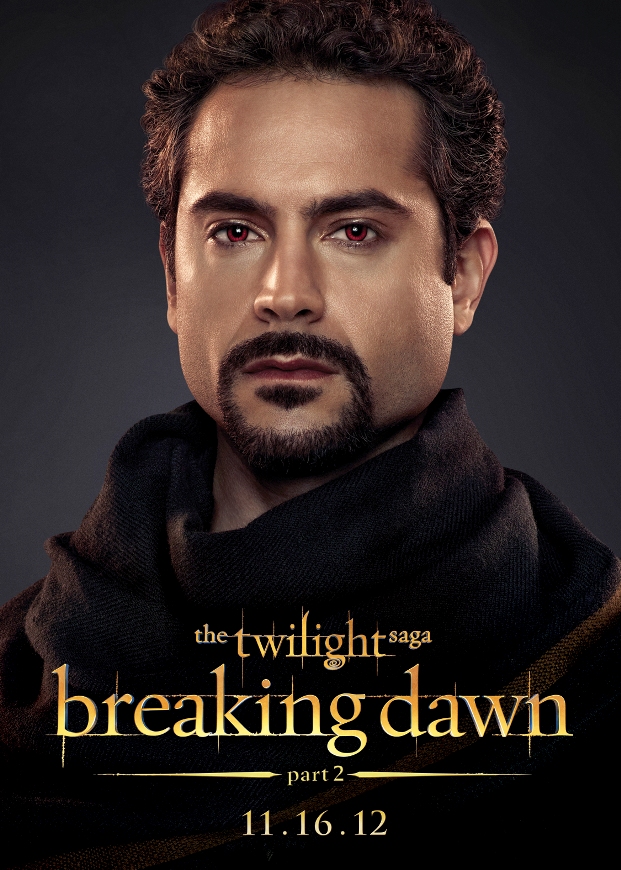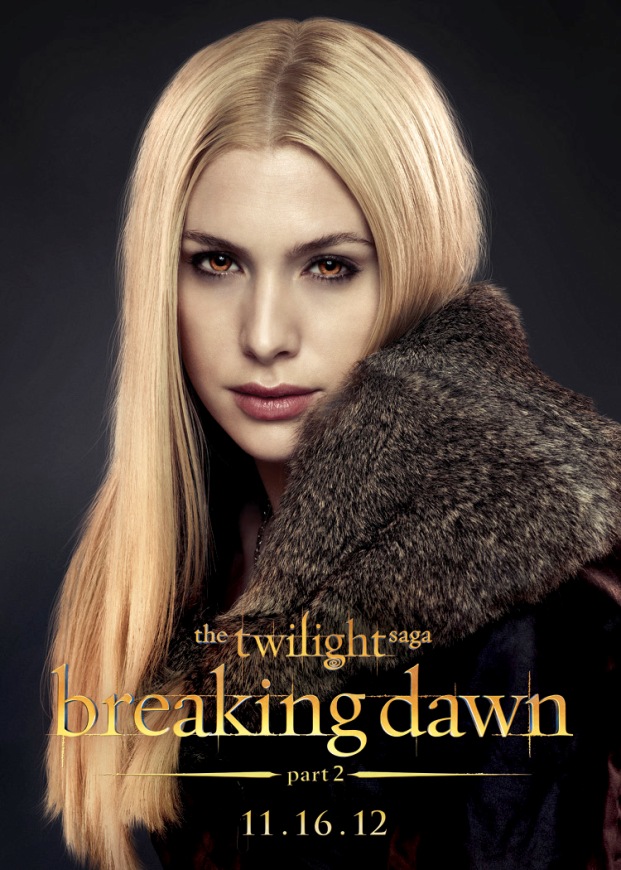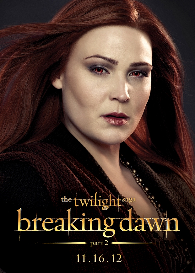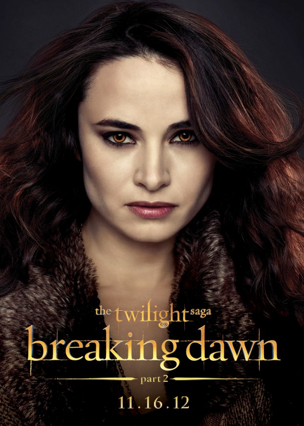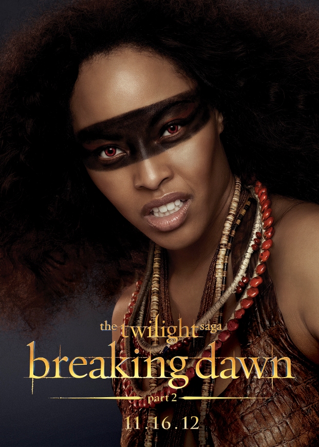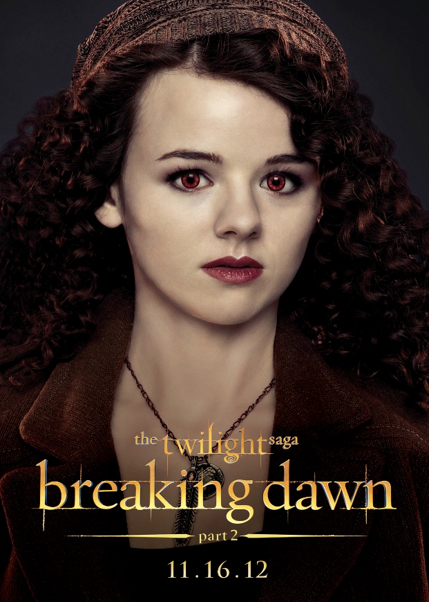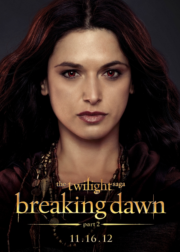 Summit Entertainment released a slew of posters for the last installment of the Twilight Saga, Breaking Dawn – Part 2. 23 posters to be exact. Talk about a supporting cast! All 23 characters are broken up into seven different covens/clans — The Amazon Coven, American Nomad, The Cullens Coven, The Denali Coven, The Egyptian Coven, The Irish Coven, The Romanian Coven. Several of their powers were revealed in the teaser trailer released back in June.